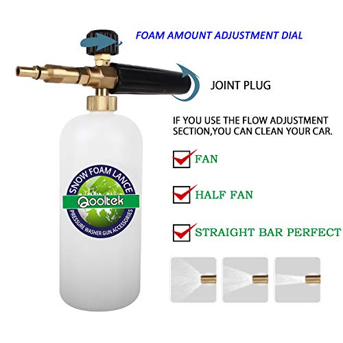Qooltek Cannone Schiuma Regolabile Bottiglia da 1 Litro Lancia Schiuma Lancia Sapone Dispenser Ugello per Bosch Aquatak Aqt Nuovo Tipo Idropulitrice ad alta pressione