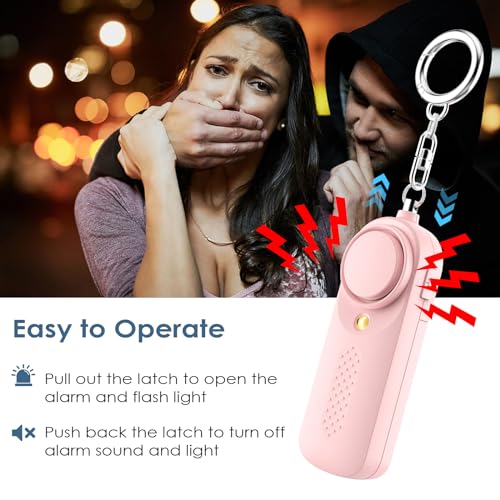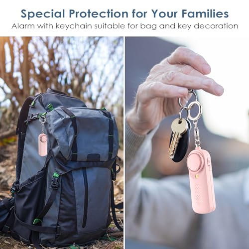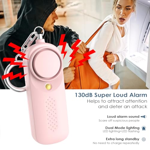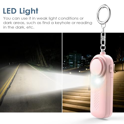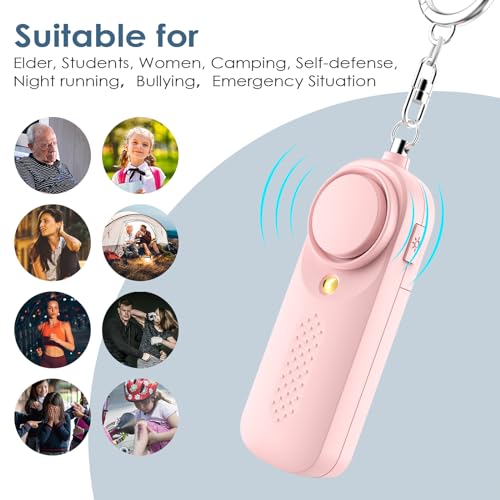 130dB Suono Forte: 130dB allarme personale forte con portachiavi, può emettere un suono forte per attirare l'attenzione, anche da lontano. I 130 decibel possono spaventare efficacemente gli aggressori in pericolo e cercare aiuto alle persone intorno;