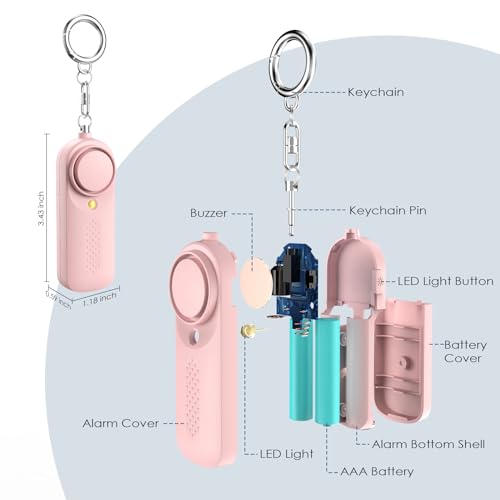 Funzioni Multiple: Questo allarme di sicurezza è una necessità di sicurezza per viaggiare, escursioni, campeggio e camminare il cane. Progettato per persone di tutte le età, come studenti, sicurezza dei bambini, camminatori, jogging, anziani, gufi notturni, lavoratori solitari. NOTA: Quando la batteria è scarica, il suono di avvertimento e la luce verranno abbassati. Ricordati di sostituire le batterie.
