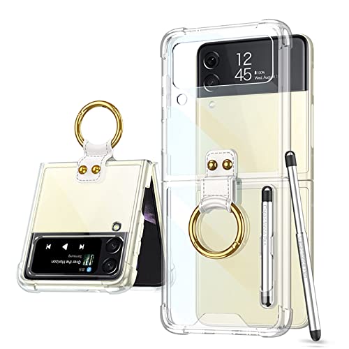 Qoosea Cover per Samsung Galaxy Z Flip 4 2022 con Anello, Pieghevole Ultra Sottile Protettiva Custodia con Stilo, Anti-Scratch Hard PC Case per Samsung Z Flip 4 5G