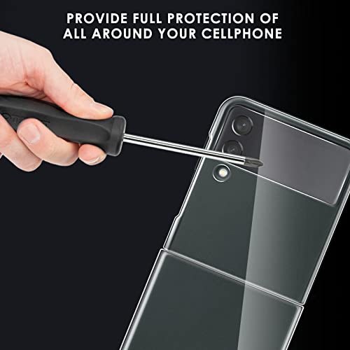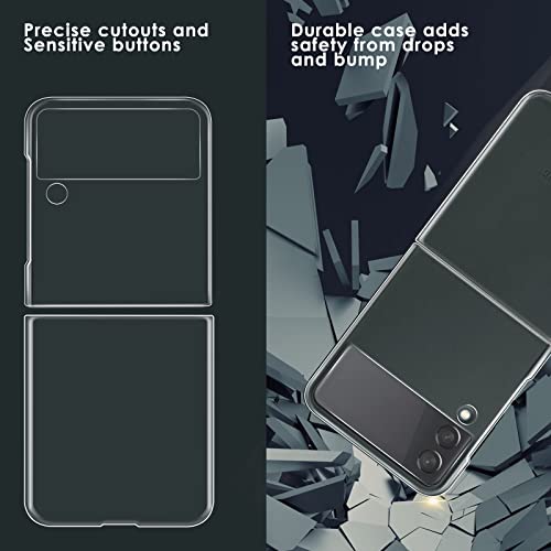 [Materiale per PC di Alta Qualità]: la custodia trasparente per Samsung Galaxy Z Flip 3 è realizzata in materiale per PC di alta qualità, resistente e duro, non facile da staccare, riduce le impronte digitali, previene lo scolorimento, antiurto e anti-caduta. L'aspetto della trama cristallina, il corpo snello e sottile, lascia che il tuo telefono mantenga l'aspetto e il tocco originali.