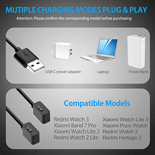 【Ampia Compatibilità】Questo cavo di ricarica per orologio USB è compatibile con Redmi Watch3/Mi watch lite3/Xiaomi MI Band 7 Pro/Redmi Watch 2 Lite/Redmi watch 2/Xiaomi POCO Watch/Redmi Smart Band PRO, ecc.