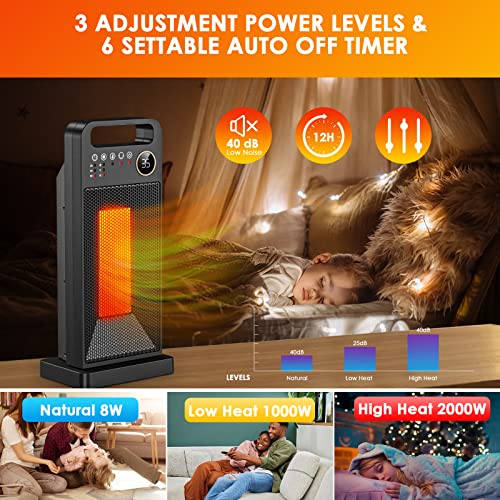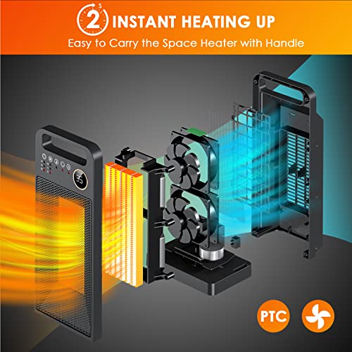 Qoosea Riscaldatore di Spazio Riscaldatore Elettrico Portatile 2000W Riscaldamento Rapido PTC Riscaldatore di Spazio Elettric Telecomando con Protezione da Ribaltamento e Surriscaldamento(Nero)