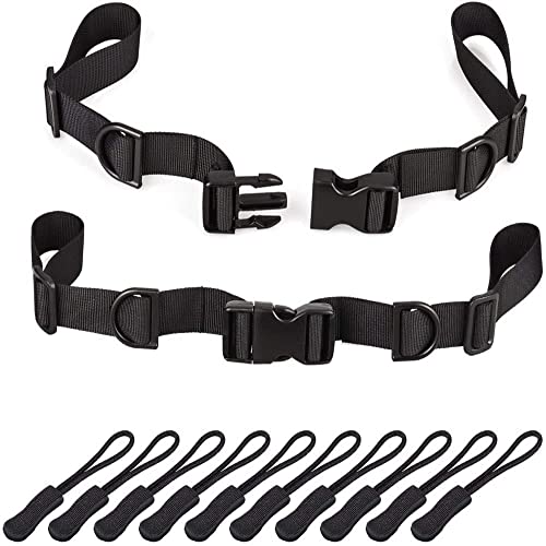 Qoosea Zaino Cintura Pettorale 2 Pezzi Zaino Regolabile Resistente Cinghie Pettorali Cintura Pettorale con Fibbia a Sgancio Rapido 10 Pezzi Cerniere Tira per Escursionismo Campeggio Jogging (Nero)
