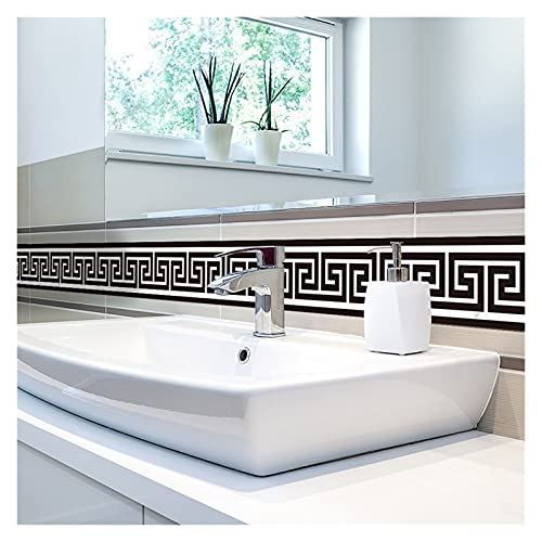 QOXEFPJZ Piastrelle adesive 10x200cm Border Autoadesivo Bordo Carta da Parati Adesivo Guadagna Guanto Geppo Motivo Greco Adesivi da Pavimento Baseboard Impermeabile Home Decor