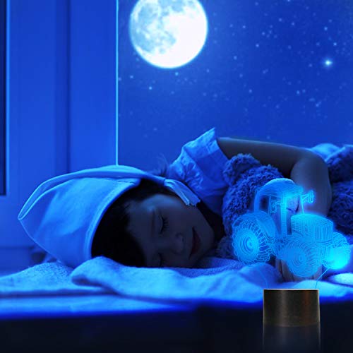 ❤ Visive 3D creative per la camera: questa è una luce illusione 3D che mostra il trattore quando si illumina, e una tavola piatta in acrilico ottico intagliata con luce laser offre una straordinaria grafica 3D. La luce notturna 3D in realtà è piatta ma può creare un'innovativa atmosfera artistica 3D visiva. Questo sorprenderà e stupirà i tuoi figli e gli ospiti. Incredibile lampada ottica per trattore illusione visiva rende la vostra stanza più interessante.