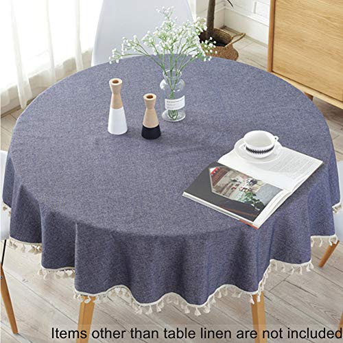 QPllRZZ Semplice Stile Nordico Tovaglia, Rotondo Tovaglia Anti-Polvere Copritavola Cotone Lino Circolare Tavolo Cover per Buffet Tavolo, Feste, Vacanze Cena - Navy, Free Size