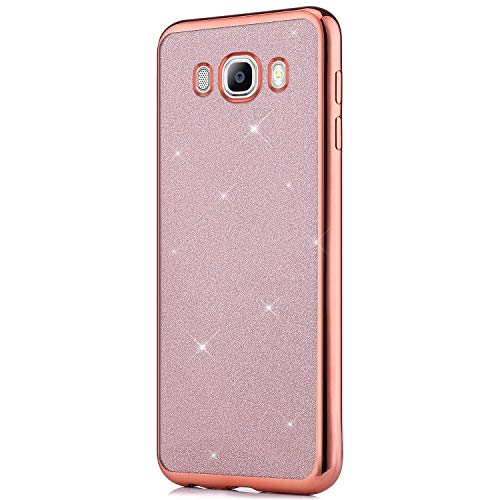 QPOLLY Brillante Cover Compatibile con Samsung Galaxy J5 2016 Bling Glitter Morbida TPU Silicone Gel Placcatura Cover Trasparente Ultra Sottile Slim Bumper Antiurto Protettiva Custodia,Oro Rosa
