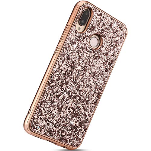 QPOLLY Cover Brillantini Compatibile con Huawei P20 Lite, Custodia Bling Glitter Design PC Duro + Interno in Morbido Silicone TPU Bumper Ultra Sottile Luminosa Placcatura Antiurto Cover,Oro Rosa