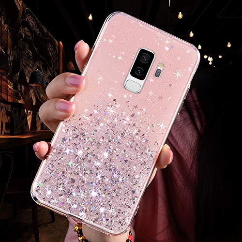 QPOLLY Cover Brillantini Compatibile con Samsung Galaxy S9 Plus, Bling Glitter Stella Disegni Trasparente Morbida TPU Silicone Gel Gomma Bumper Custodia Ultra Sottile Crystal Clear Antiurto Cover,Rosa