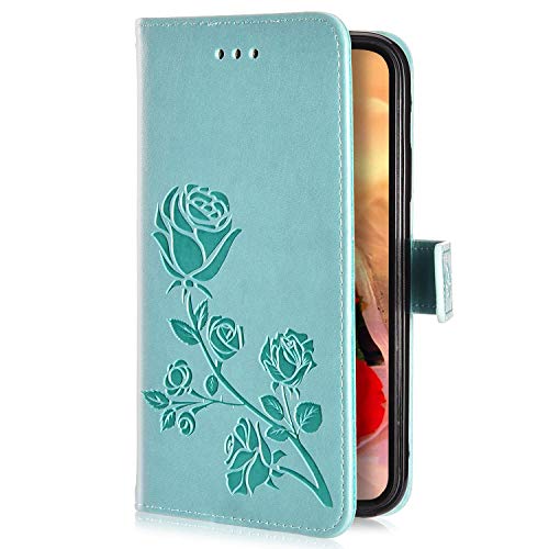 QPOLLY Cover Compatibile con Huawei Honor 9 Lite Flip Custodia Caso Libro Pelle PU e TPU Silicone con Fiori Disegni Funzione Supporto Chiusura Magnetica e Slot per Schede Portafoglio Custodia,Verde