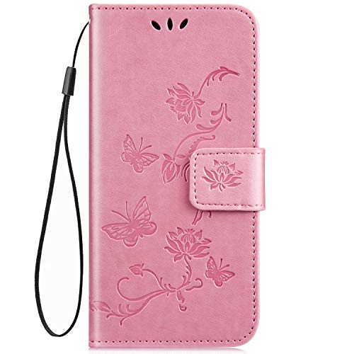 QPOLLY Cover Compatibile con Samsung Galaxy A40 in PU Pelle Custodia Libro Flip e TPU Silicone con Fiori Farfalla Modello Funzione Supporto Chiusura Magnetica Portafoglio Bumper Case Caso,Rosa