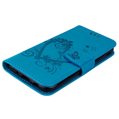QPOLLY Cover Compatibile con Samsung Galaxy J5 2017, PU Pelle Flip Portafoglio Supporto Libro Cover Elegante Floreale Amore Farfalla Disegni Slot per Scheda Chiusura Magnetica Antiurto Custodia,Blu