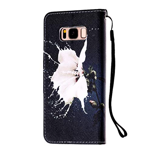 QPOLLY Cover Compatibile con Samsung Galaxy S8, Flip Portafoglio Custodia Libro Folio Pelle PU Morbida Cover con Design Modello Chiusura Magnetica Slot per Schede Funzione Supporto Caso Cover,Fiori-1