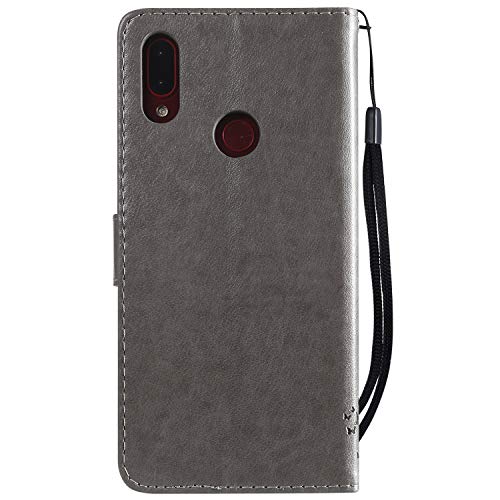 QPOLLY Cover Compatibile con Xiaomi Redmi Note 7, Portafoglio in PU Pelle Libro Flip Caso Custodia con Albero Gatto Design Slot per Schede Chiusura Magnetica Funzione Supporto Cover,Grigio