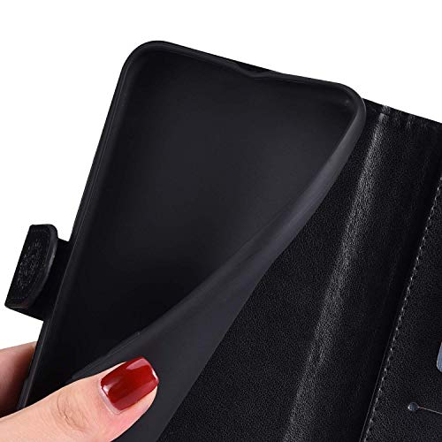 QPOLLY Cover Libro Compatibile con Xiaomi Mi 6X/Mi A2 Custodia Morbido in Pelle PU Portafoglio Flip 360 Gradi Case con Mandala Fiori Disegni Porta Carte Chiusura Magnetica Funzione Supporto Cover,Nero
