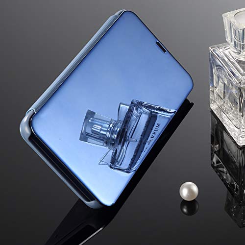 QPOLLY Cover Specchio Compatibile con Huawei P30 Lite Flip Custodia a Portafoglio Libro Ultra Sottile Case Traslucido Clear View Folio Protettiva Mirror Cover con Funzione Supporto,Blu