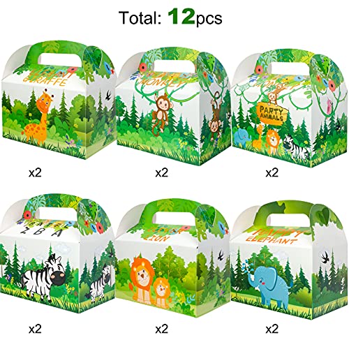 Qpout 12pcs Scatole per Alimenti per Feste Animali,Scatole di Caramelle per Feste di Compleanno per Bambini Picnic nella Giungla Regali per Feste di Matrimonio Scatola di imballaggio Vuota per Torta