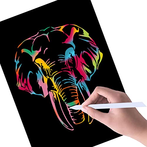 【Progetti Artistici Divertenti per Bambini】La carta nera opaca per graffi arcobaleno nasconde il rivestimento luminoso dell'arcobaleno, devi solo fissare il modello di pittura di plastica animale sulla carta nera opaca, quindi utilizzare una penna da scrittura in plastica per raschiare semplicemente secondo il modello, puoi dipingere un bellissimo motivo, perfetto per la festa dei bambini.