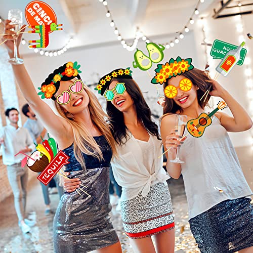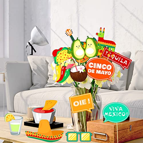Qpout 44PCS Messico Fiesta Photo Prop Forniture per Feste di Carnevale Messicano per Il Primo Maggio Selfie Party Supplies Fiesta Decorazione per Foto Festa a Tema Messicana