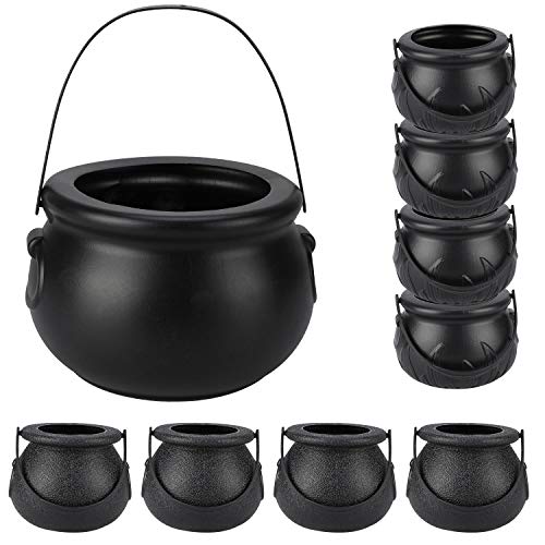 Qpout 9pcs Calderone Nero con Manico Feste di Halloween Secchio di Caramelle Calderone Strega di Plastica Bollitore per Caramelle e Pentola d'oro Calderone Porta Caramelle Vaso per Festa di Halloween