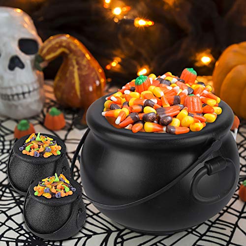 Il secchiello per caramelle del calderone di Halloween con manico contiene 9 calderone della strega di Halloween con manico in 3 diverse dimensioni 5 * 7 pollici / 2,5 * 1,96 pollici / 2,5 * 2,1 pollici. Grande aggiunta alle tue forniture o decorazioni per feste di Halloween.