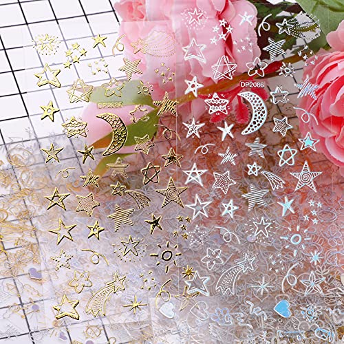 Qpout Decalcomanie per Adesivi per Unghie in Argento Dorato(1000 Modelli),Stella Fiore Animale Suggerimenti per Unghie autoadesivi Decorazione per Manicure per Donne Ragazze Bambini Regali per Unghie