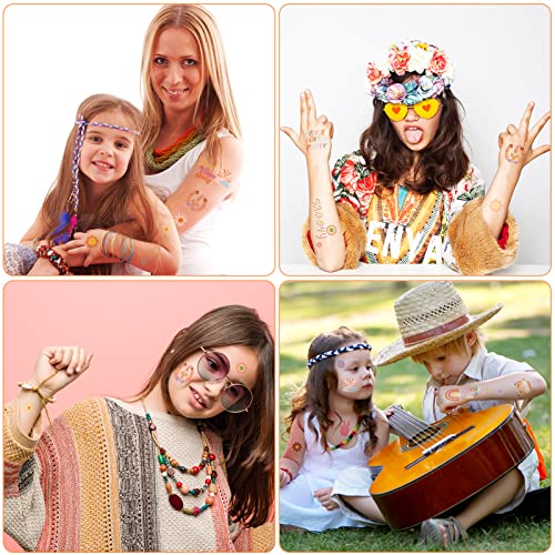 【Tatuaggi hippie】 Riceverai 2 adesivi per tatuaggi hippie con molti disegni, inclusi tatuaggi con logo amore e pace, tatuaggi arcobaleno, tatuaggi floreali, tatuaggi per auto, ecc. Design unico e quantità sufficiente per le tue esigenze di decorazione della festa.
