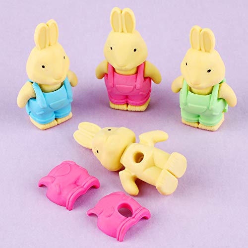 Qpout 12 pezzi Gomma da cancellare coniglietto per bambini, mini a forma di coniglietto verde rosa blu, staccabile e giocabile, per ragazze dei ragazzi
