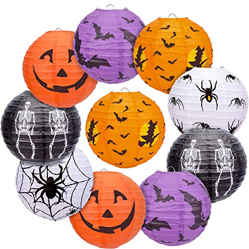 Qpout 10 Pezzi Lanterne di Carta di Halloween, Lanterna di Carta da Appendere a Zucca di Halloween, Lanterna di Scheletro di Pipistrello di Ragno di Zucca Jack-o-Lantern per Decorazione di Festa