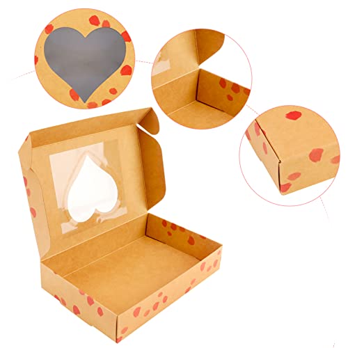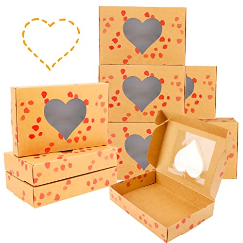 Qpout 12 pezzi Scatole Di Caramelle Kraft Cuore Con Finestra, Scatole di imballaggio vuote per torta di biscotti da 7 x 4,5 x 1,3 pollici, Bambini Compleanno Matrimonio San Valentino Confezione regalo