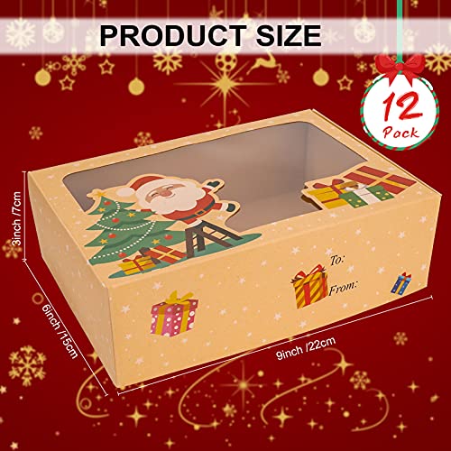 Qpout Scatole per Biscotti Natalizi, 12 Pezzi Scatole per Caramelle in Carta Kraft con Finestra (Babbo Natale Alce Pupazzo Neve Omino Pan Zenzero) per Decorazioni Natalizie Regali Natale 9x6x3 poll