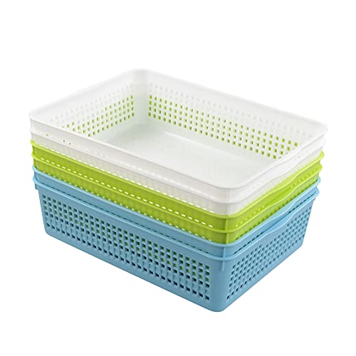 Qqbine A4 Cestino Portaoggetti in Plastica, Cestini in Plastica per Organizer, Bianco, Verde e Blu, Set di 6