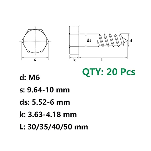 Qrity 20 Pezzi M6 x 50 mm Acciaio Inossidabile Esagono Lavorazione Del Legno Mezza Filettatura Bullone Viti Esterne Testa Esagonale Autofilettanti Viti Per Legno