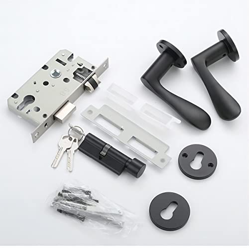 Qrity Serratura a Maniglia Moderna, Serratura per Porta in Legno, Serratura a Leva Divisa in Alluminio, Serratura a Leva Nera per Porta Esterna con Ingresso Interno
