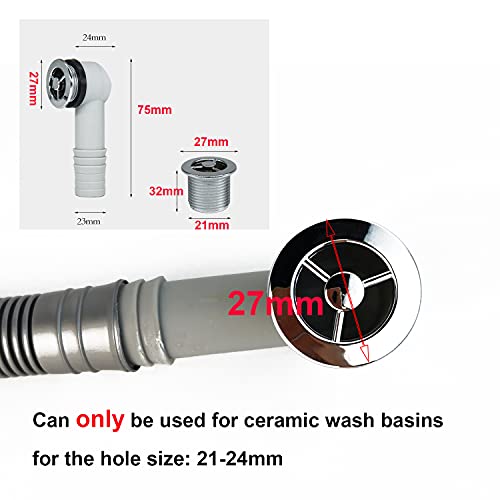 Qrity 2x Tubi di Troppopieno, Tubo di Troppopieno per Lavabo in Ceramica per Bagno Troppopieno per Lavabo in Marmo, Interfaccia Rotonda, per Diametro del Foro di Troppopieno 21-24 mm