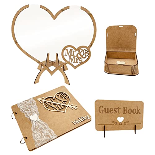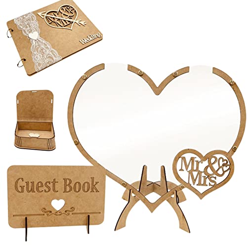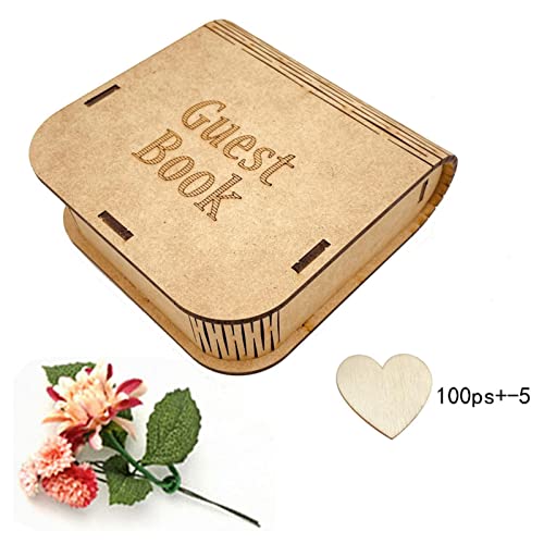 Qserd Libro degli ospiti per matrimonio, a forma di cuore, in legno, con 100 cuori per il messaggio degli ospiti