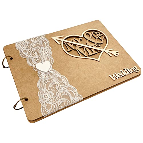 Qserd Libro degli ospiti per matrimonio, a forma di cuore, in legno, per la ricezione, con 100 cuori per il messaggio degli ospiti