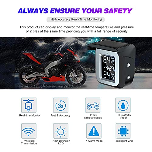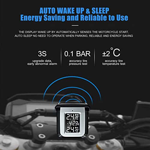 Qserd TPMS per Moto Senza Fili - Sensore di Pressione dei Pneumatici Impermeabile | di monitoraggio della Pressione dei Pneumatici per Veicoli a Motore a 2 Ruote, accensione/spegnimento Automatico