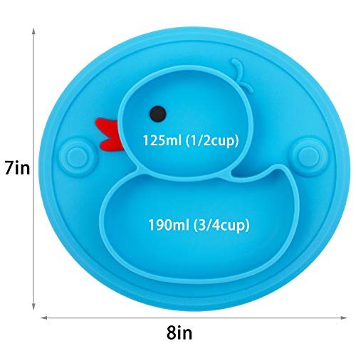 Qshare Piatto con Ventosa per Bambini in Silicone, Piastre per Neonati portatili per bambini, aspirazione potente su tavola, lavastoviglie e microonde sicura dalla FDA