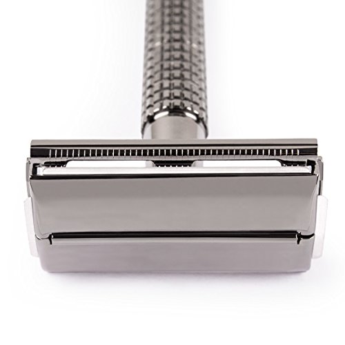 Qshave - Rasoio di sicurezza / sicurezza a farfalla, con impugnatura lunga (11,5 cm), placcate titanio, colore: Grigio metallizzato