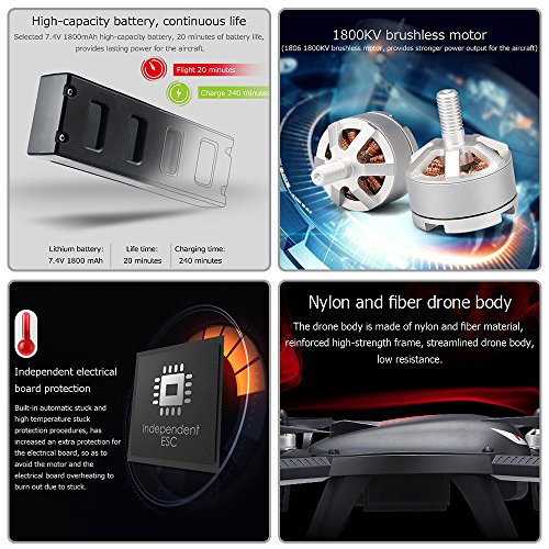 ★ Modalità di mantenimento dell'altitudine: ha l'interruttore della velocità e con la funzione di mantenimento dell'altitudine offre volo stabile e riprese stabili. Facile da manipolare.