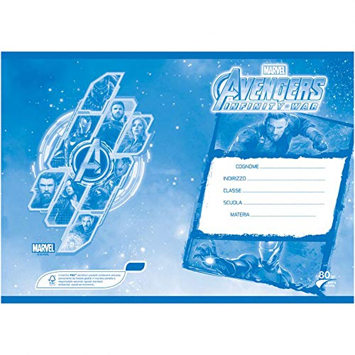Pack 4 Quaderni Avengers Infinity War - Formato A4, Rigatura 10, Quadretti 1cm/10mm per 1° Elementare, Carta 80G/Mq, Pacco da 4 Pezzi
