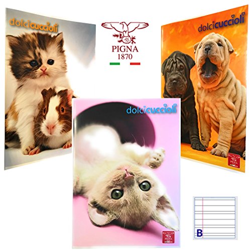 Quaderni PIGNA Dolci Cuccioli, rigatura B, a righe con margine per terza elementare, SET da 3 quaderni