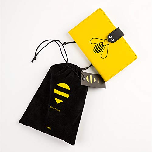 Quaderno A5 con disegno di api a scatto in pelle con sacchetto di velluto a righe