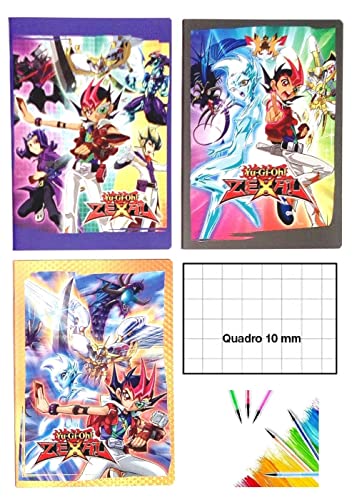 QUADERNONE QUADERNO Yu Gi Oh Zeal 3 pezzi SCUOLA a QUADRETTI 10 mm + omaggio penna glitterata + omaggio segnalibro