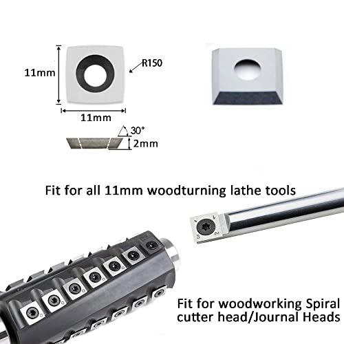 Dimensioni: 11 mm di lunghezza x 11 mm di larghezza x 2,0 mm di spessore, 4 taglienti indicizzabili R150, angolo di taglio di 30°, un foro di svasatura, finitura, tornio Hollower tornio strumento di tornitura del legno o pialla per la lavorazione del legno, ecc.