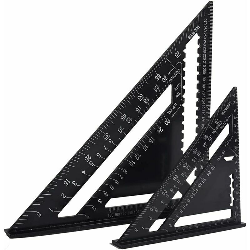 Stile metrico: include righello triangolare metrico da 17 cm e 30 cm, con finitura nera opaca per prevenire l'abbagliamento, resistente alla corrosione e durevole, difficile da rompere. Nessun spigolo vivo, non ti farà male alla mano. Qualità Premium: il gallone quadrato metrico, il gallone quadrato in lega di alluminio di alta qualità, elevata durezza, forte tenacità, non facile arrugginire. Ampiamente usato: questa squadra da falegname può essere utilizzata come goniometro, troncatrice, guida per sega da tracciare, squadra per inquadrature e righello, ideale per tutti i progetti di costruzione e ristrutturazione. Segnare facilmente le linee di taglio: questo righello triangolare utilizza un bordo più spesso, può essere utilizzato direttamente con la sega contro il quadrato #39;