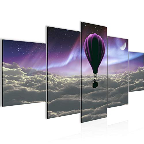 Runa Art - Quadri Aurora Mongolfiera 200 x 100 cm 5 Pezzi XXL Decorazione Murale Design Viola Grigio 608151b