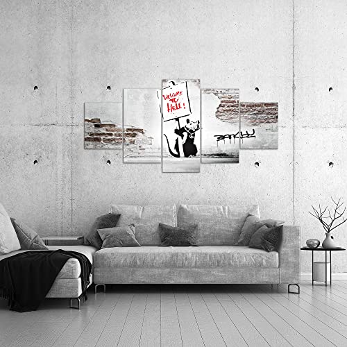 Runa Art - Quadri Banksy Graffiti Ratti 5 Pezzi XXL Decorazione Murale Design Nero Grigio Rosso 040451c